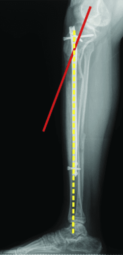轴向偏斜是胫骨中更常见的问题。胫骨往往会延长成外翻和外翘。为防止这种情况,钉子应插入正确的起点,该起点非常高,并且尽可能靠后,在胫骨的外侧,并在额平面的膝盖中心。如果指甲与截骨术上方的外侧皮层之间有空间,则应在该空间中插入阻挡螺钉。如果指甲与后皮层之间有空间,则在那里插入另一个阻挡螺钉。我设计了 STRYDE 钉子,通过提供第三个近端锁定螺钉(P2.2 只有两个)来抵抗轴向偏差。如果遵循所有这些预防措施,则不会随着延长而出现屈曲或外翻畸形。
